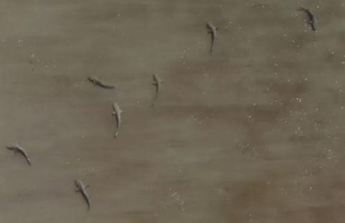 В воде мужчина заметил несколько подозрительных плавников, так что он предпочёл вернуться на берег и запустил в воздух дрон, чтобы с высоты осмотреть побережье. То, что снял беспилотник, шокировало серфера, ведь вода буквальна кишела десятками акул.
