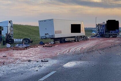 Управление государственных дорог Великобритании заявило, что фура потеряла груз с томатным пюре, и все содержимое контейнера вылилось на магистральную дорогу из Кембриджа в Хантингдон A14. Дорожное ЧП произошло 2 июня, водитель грузовика отделался легкой травмой.