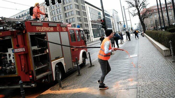 Четыре сторонника движения "Последнее поколение" прибыли к зданию на пожарной машине и распылили краску, а затем воду из шланга. Пока неизвестно, удастся ли смыть краску с песчаника, из которого изготовлено здание. Причиной акции назвали отказ правительства Германии от курса на полный запрет двигателей внутреннего сгорания, что назвали нарушением закона о защите климата.