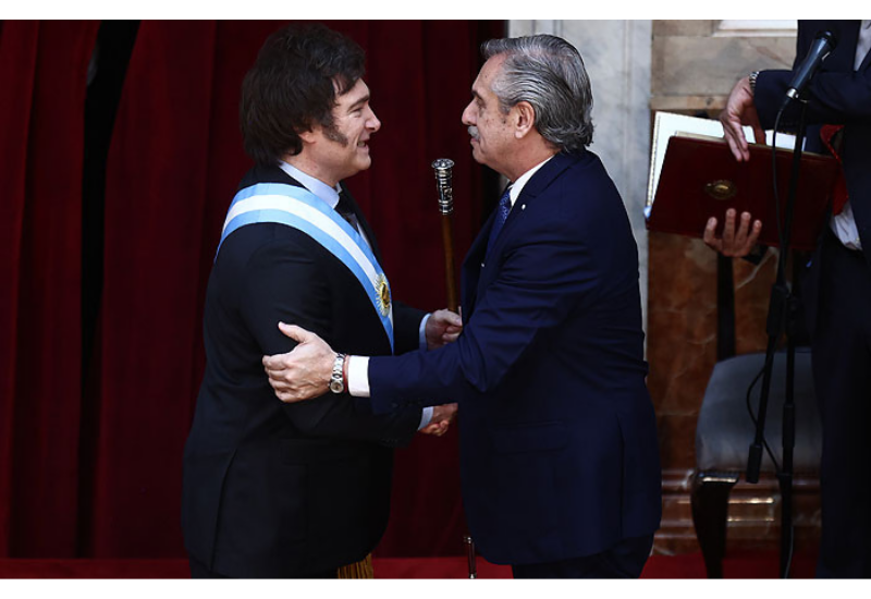 Также в здании конгресса состоялась церемония передачи власти: ушедший президент Альберто Фернандес передал Хавьеру Милею президентские ленту и жезл.
