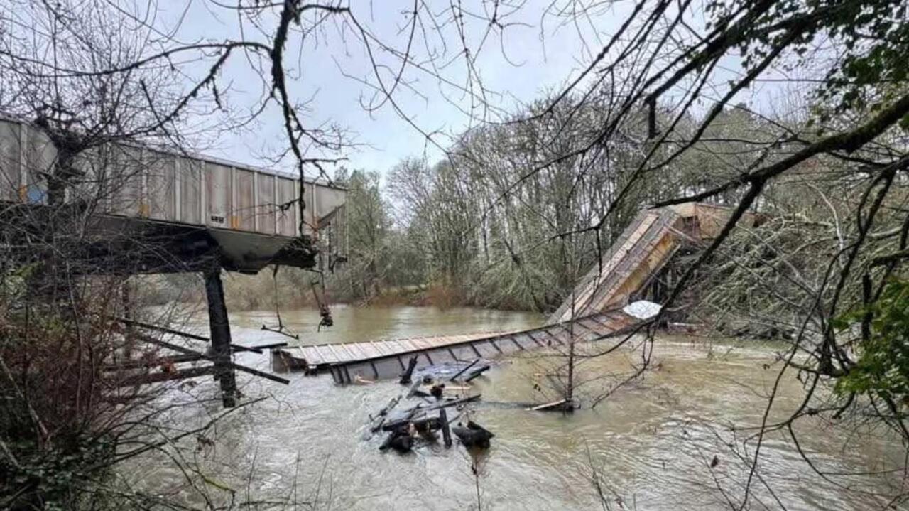 Мост в городе Корваллис, штат Орегон, обрушился во время движения грузового поезда, один из вагонов упал в реку.
