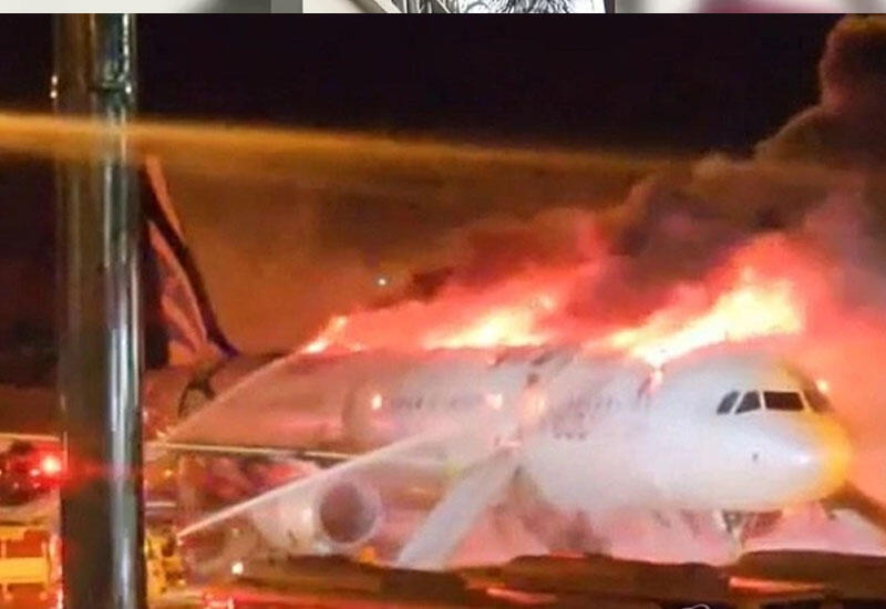 Хвост лайнера загорелся перед взлетом в 22:30 по местному времени. На борту находились 169 пассажиров и семь членов экипажа, их эвакуировали по надувному трапу.