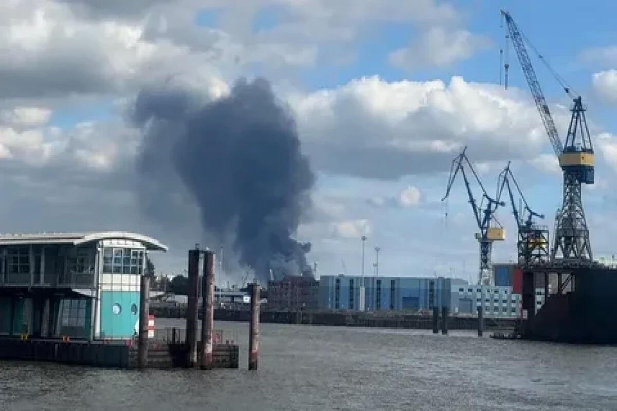 Из-за взрывов на складе в портовой зоне Гамбурга произошел крупный пожар.