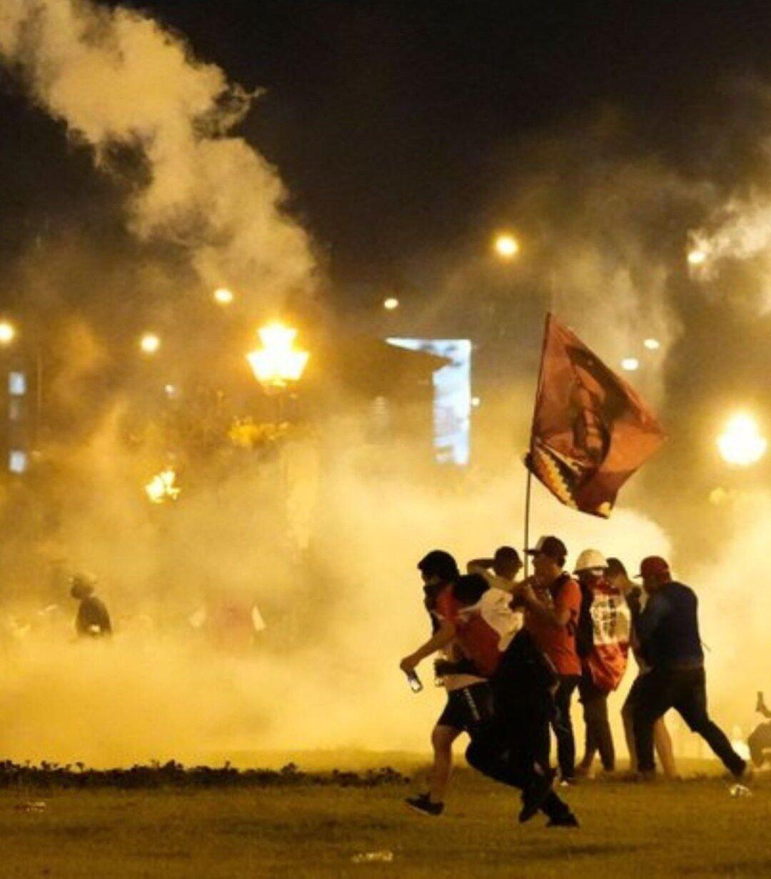 Протесты в Перу обострились, столкновения протестующих с полицией становятся всё жёстче. Как передает Day.Az, кадры опубликованы в Телеграм. Протестующие требуют отставки президента страны Дины Болуарте, которая пришла к власти в результате действий, крайне напоминающих госпереворот. Представляем вашему вниманию данное видео: