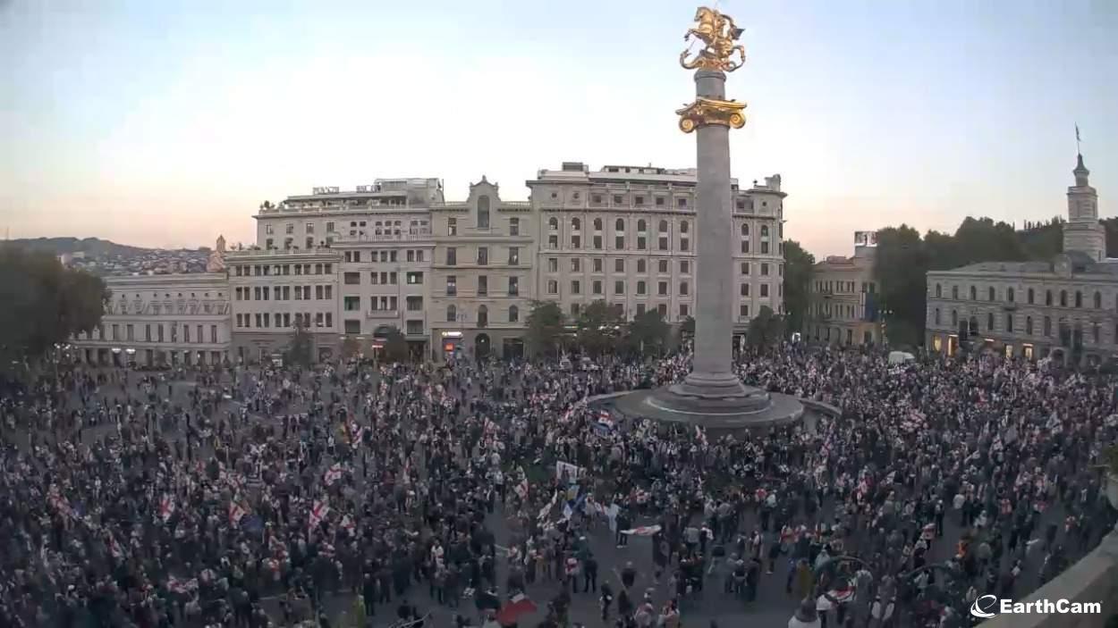 Как передает Day.Az, по последним данным грузинская оппозиция собралась днём у здания парламента, митингующие с флагами ЕС, США, Грузии перекрыли проспект Руставели.