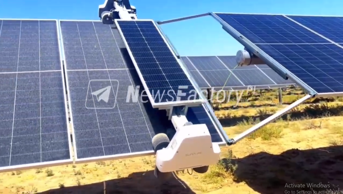 На видео робот на солнечной энергии самостоятельно очищает фотогальванические (солнечные) панели.
