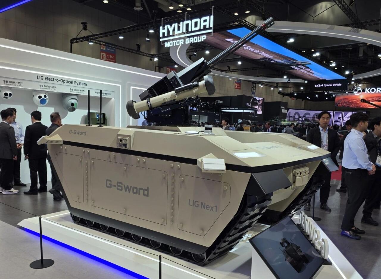 Южнокорейская компания LIG Nex1 представила наземную роботизированную платформу G-Sword на выставке ADEX 2025 в Сеуле (Южная Корея).