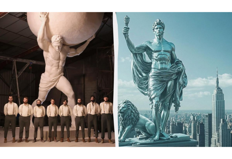 Статуя изображает атланта в набедренной повязке, который несет большой шар. Скульптуры показали большой макет, который уже сейчас демонстрирует их намерения поразить зрителей. По замыслу, статуя будет гигантской - самой высокой в западном полушарии, и выполненной из титана, чтобы пройти проверку временем.