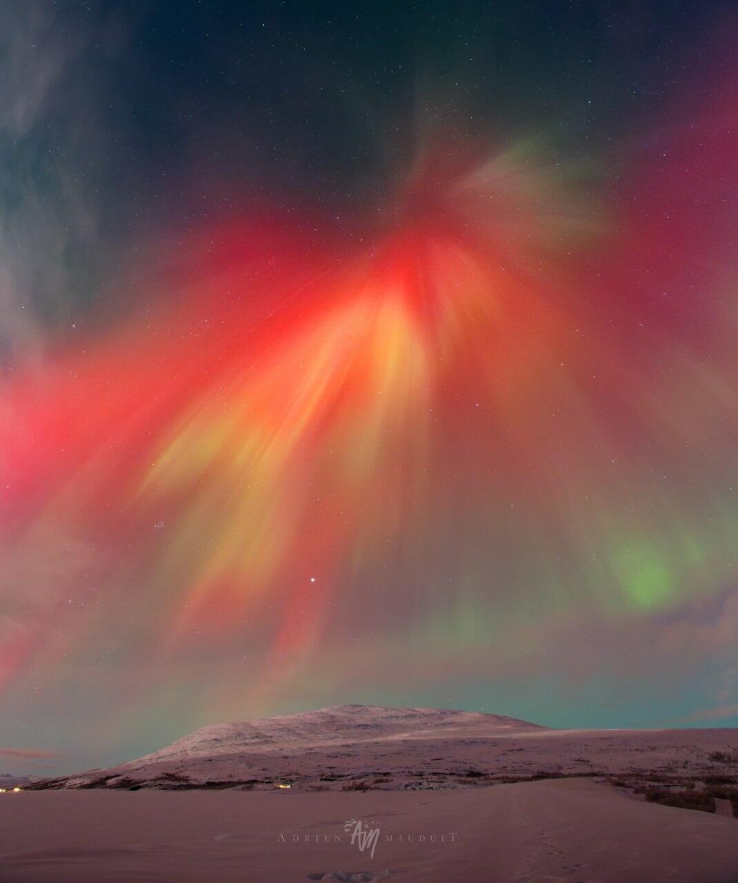 Магнитная буря вызвала яркие полярные сияния на севере Европы.
