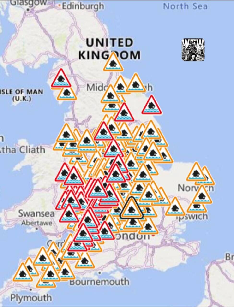 В Англии действует 238 предупреждений о наводнениях, включая 55 об ожидаемых подтоплениях.