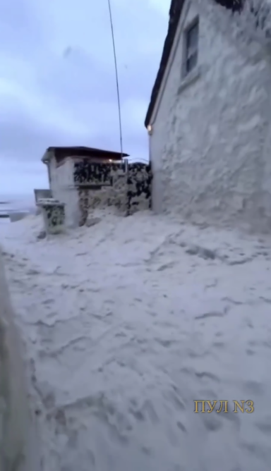 Жители ирландской деревни Лохшинни столкнулись с последствием недавнего шторма, прибрежную зону и дома окутала густая морская пена.