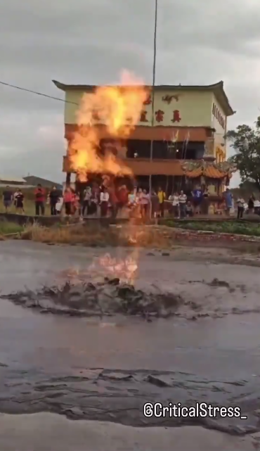 На Тайване начал извергаться грязевой вулкан. Как передает Day.Az, прямо около храма появились несколько отверстий, из которых вырывались грязь, газ и двухметровые языки пламени. Извержение продолжалось около трёх часов. Это второе извержение грязевого вулкана в этом году и одиннадцатое за последние три года. Предыдущее произошло в июне.