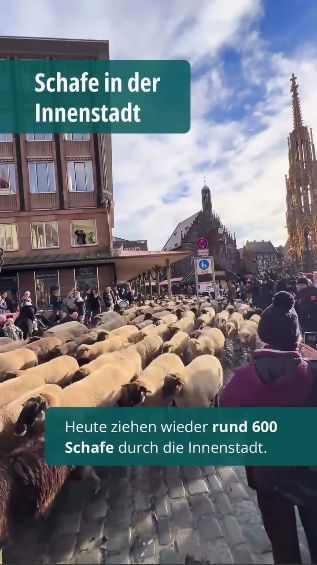 Сотни овец прошли через центр Нюрнберга - ВИДЕО