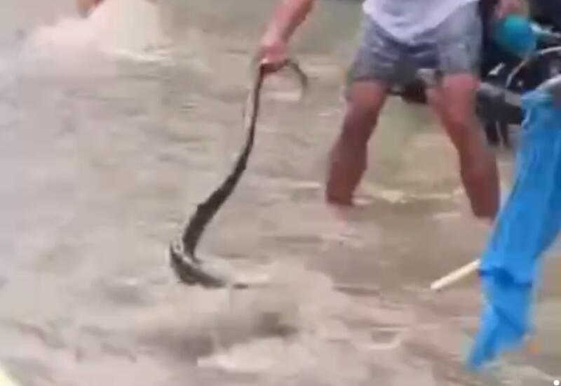 Наводнения иногда вымывают змей из лесов и рек в жилые зоны, где они ищут укрытие или еду. Жители города Легаспи на Филиппинах поймали одного, так как часть города затоплена из-за тайфуна "Вильма". Как передает Day.Az, кадры опубликованы в Телеграм. Аналогичные случаи фиксировались во время прошлых тайфунов, например, в 2023-2024 гг.
