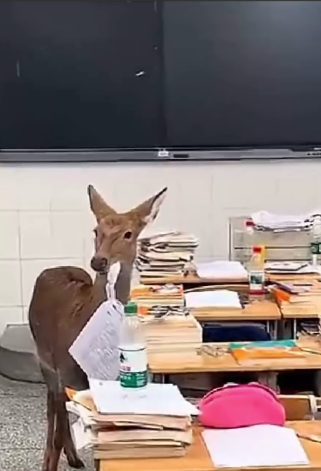 В Китае олень зашёл в школу и съел задание ученика - ВИДЕО