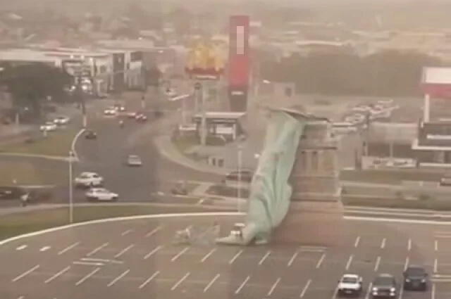 Копия статуи Свободы в муниципалитете Гуаиба в Бразилии рухнула из-за сильного ветра. По словам мэра Гуаибы Марсело Маранаты, обошлось без пострадавших, пишет G1, передает Day.Az со ссылкой на vedomosti.ru.