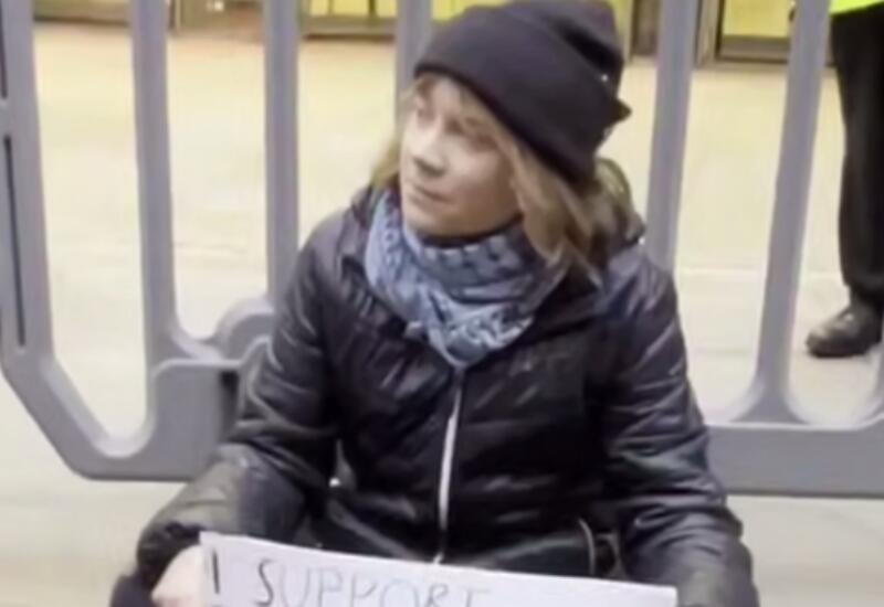 Как передает Day.Az, она держала плакат с надписью: "Я поддерживаю заключенных Палестинского движения сопротивления. Я против геноцида".