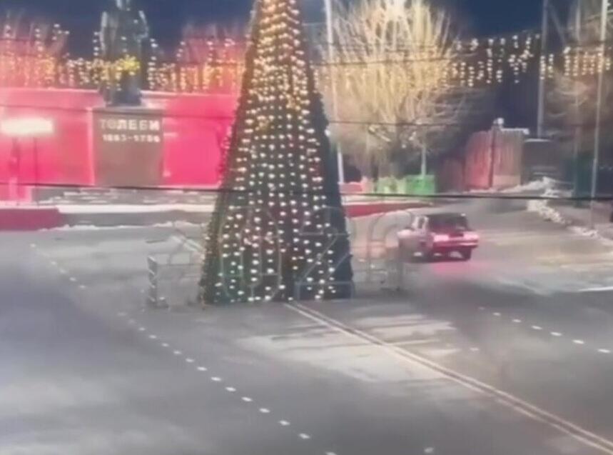Полный джингл белс случился в казахском городе Сарыагаш. Водителя быстро вычислили по камерам и заставили восстановить праздничное дерево.