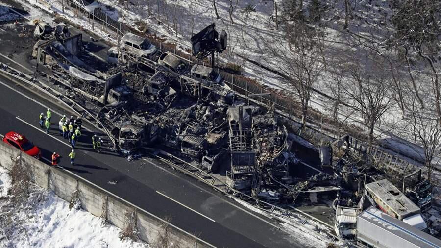Ранее мы сообщали, что на трассе в Японии столкнулись 67 машин, 20 из них загорелись.