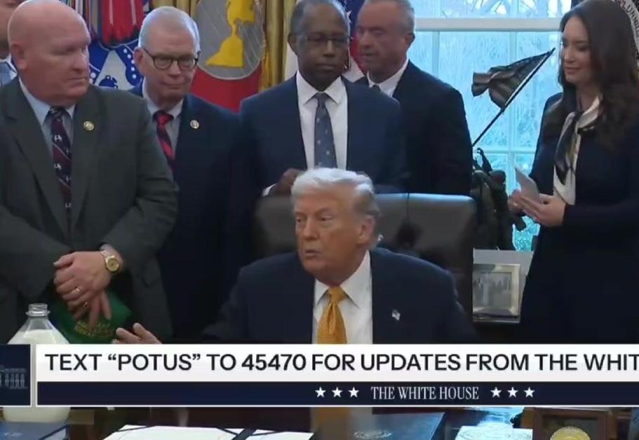 Президент США Дональд Трамп предложил журналистам, которых он в основном недолюбливает, испить несвежего молока. Как передает Day.Az, кадры опубликованы в Телеграм. "У нас здесь есть молоко. Оно простояло тут 5 дней. Я принёс его, чтобы пресса могла его взять. Вы можете выпить его всё целиком...", - сказал он.