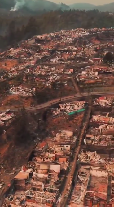 Появились кадры разрушений в чилийском городе Пунта-де-Парра, пострадавшем от сильнейших лесных пожаров в регионе Био-Био.