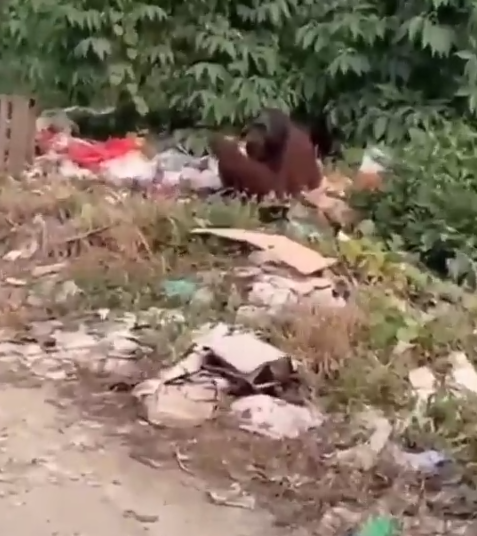 На индонезийском острове Калимантан был снят на видео орангутанг, который покинул свою естественную лесную среду обитания и начал искать пищу в мусоре на обочинах дорог.