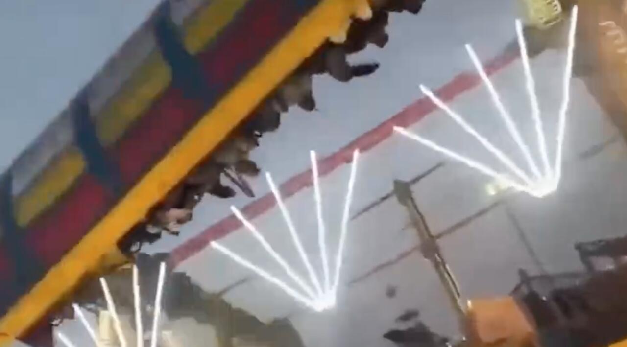 Инцидент был зафиксирован на видео, кадры которого распространились в сети. На записи видно, как вращающийся аттракцион под названием "Цунами" падает прямо на посетителей ярмарки.