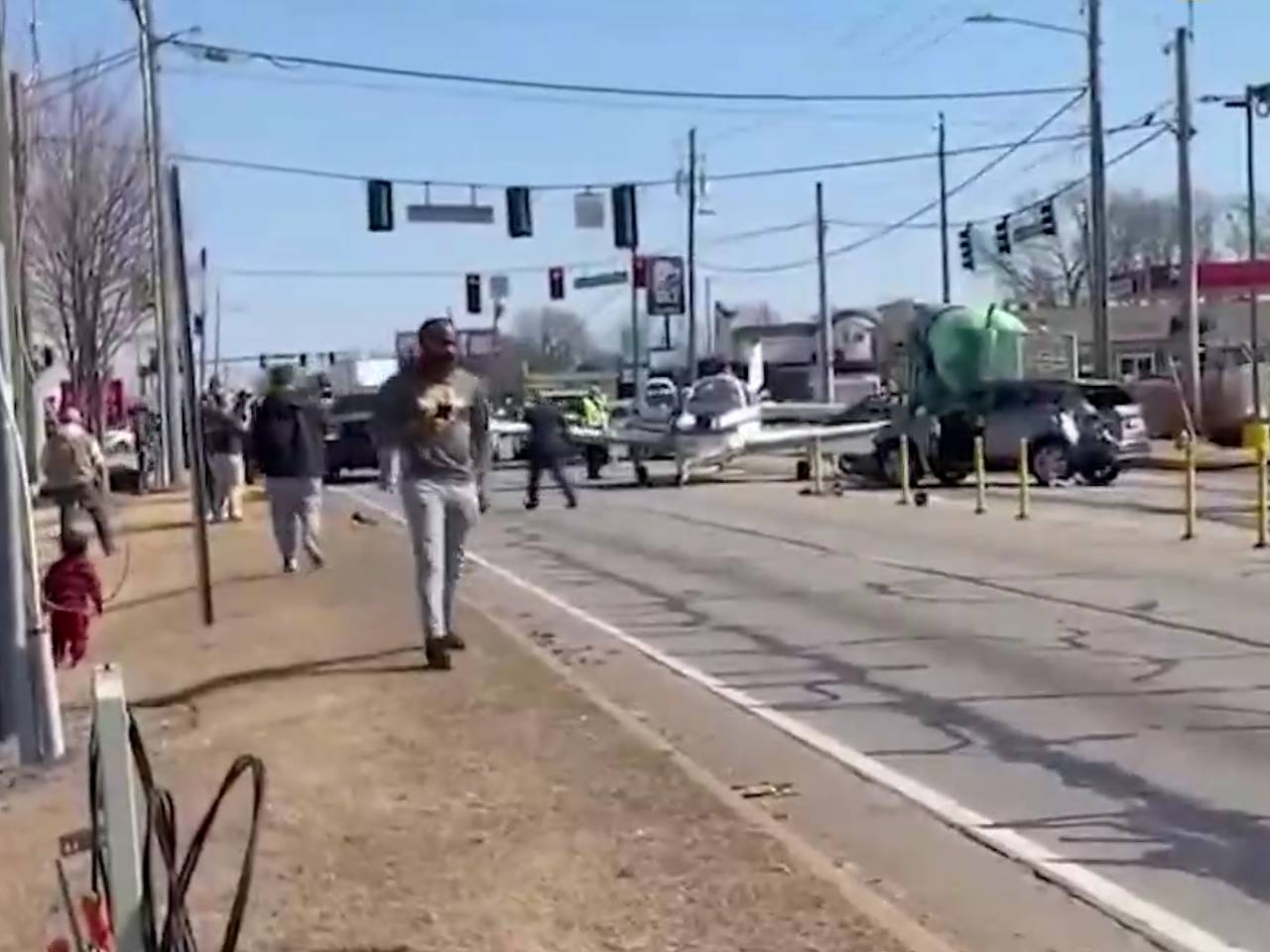Самолет врезался в автомобили во время экстренной посадки на дорогу в США.