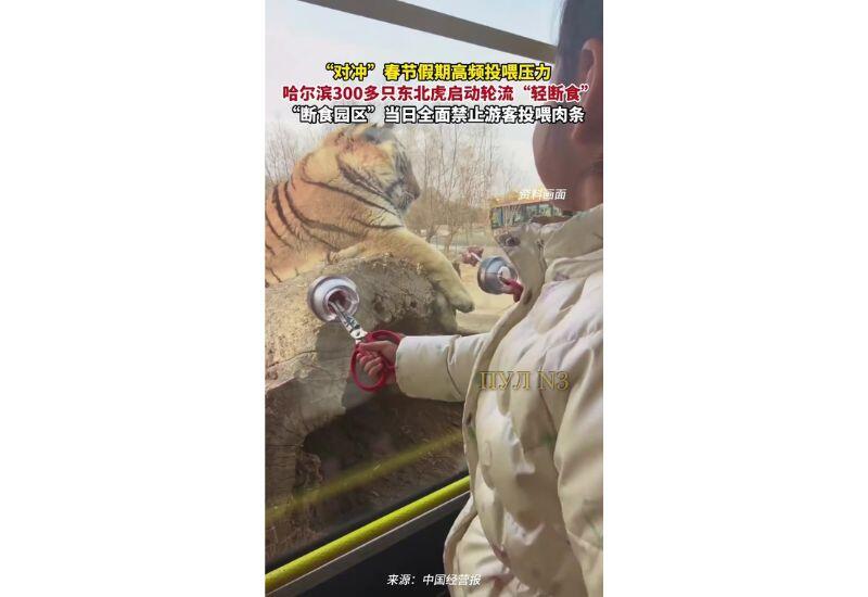 Теперь более 300 тигров в Харбине находятся на "легком голодании". В зоопарке утверждают, что этот перерыв необходим для оздоровления после недавнего новогоднего переедания. В одной зоне в день полностью исключается мясо, в то время как остальные питаются как обычно.