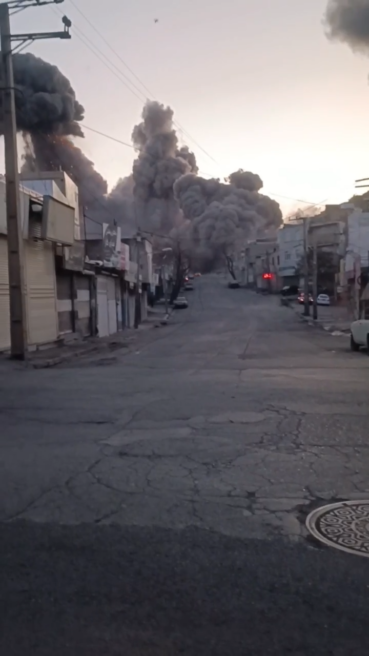 Американские и израильские силы нанесли удары по военной базе в центре города Сенендедж в Иране.