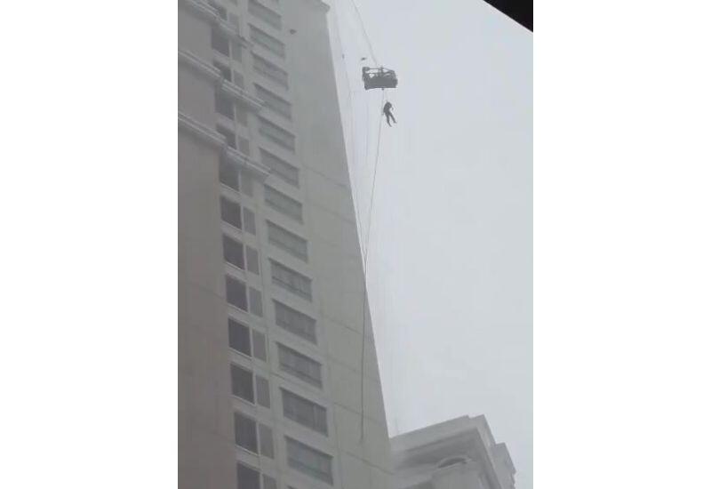 В индонезийском городе Сурабая произошел трагический инцидент, когда два работника, чистившие окна на 25-м этаже жилого комплекса, оказались в ловушке во время внезапного шторма. Как передает Day.Az, соответствующие кадры инцидента быстро распространились в сети.