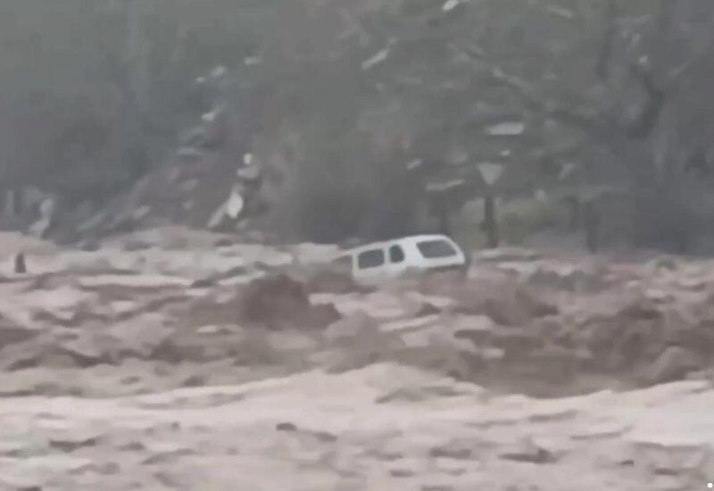 В дагестанском Хасавюрте машины с обрыва смывает прямо в реку. Как передает Day.Az, соответствующие кадры бедствия распространились в сети. Из-за сильного потопа поврежден один из мостов.