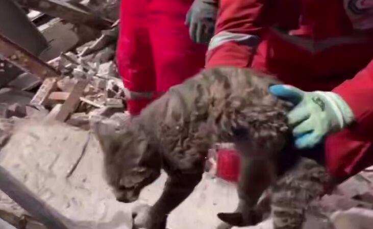 Сообщается, что сотрудник Иранского Красного Полумесяца накрыл кошку своей каской, чтобы защитить ее от падающих обломков. В результате животное удалось благополучно извлечь из-под завалов.