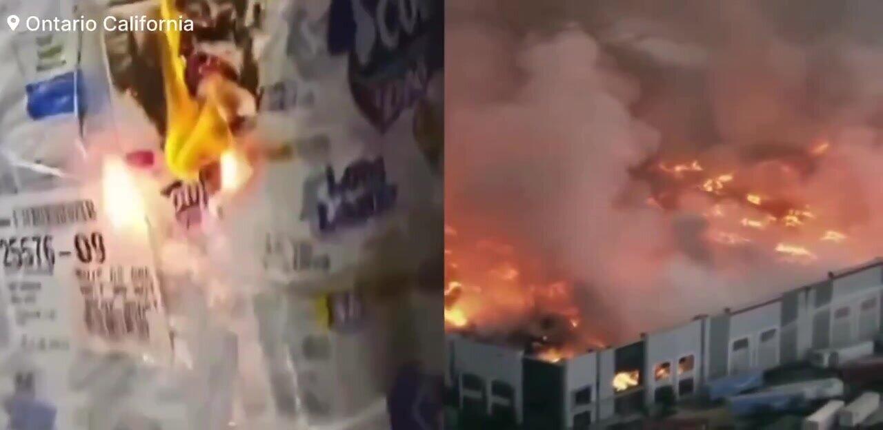 Сотрудник устроил пожар на складе в США - ВИДЕО