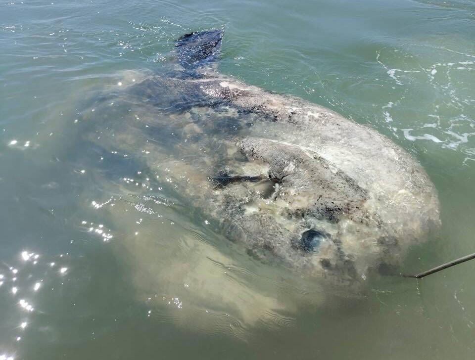 В Венеции крупная луна-рыба (sunfish) вызвала перебои в движении после того, как ее туша заблокировала один из оживленных каналов.