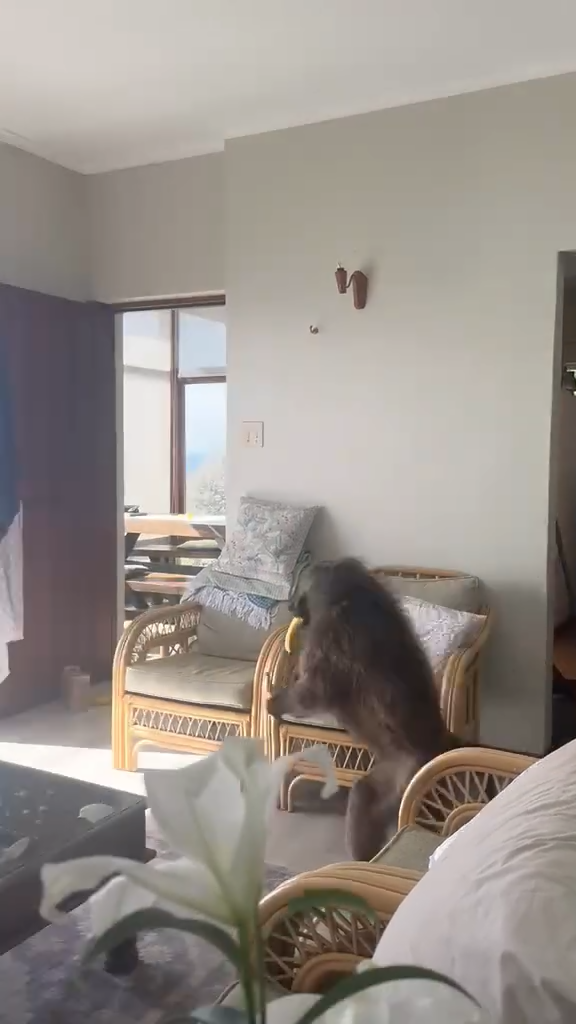В сети завирусилось видео из ЮАР, на котором домработница прогнала бабуина, укравшего фрукты.