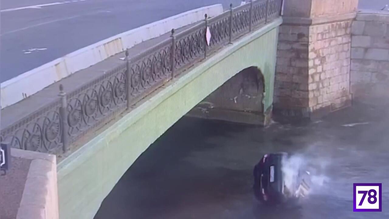 Момент падения автомобиля в Обводный канал в Санкт-Петербурге (РФ) попал на видео.