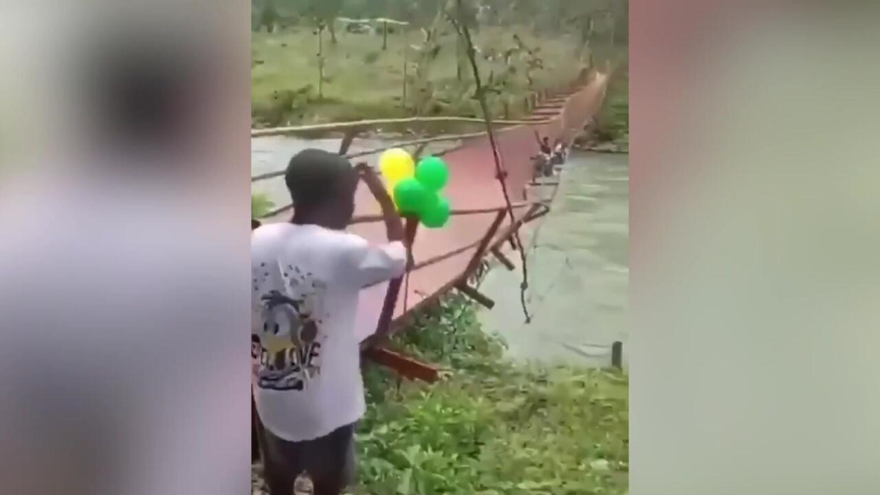 В Колумбии подвесной мост обрушился во время церемонии открытия.