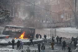 Массовые беспорядки начались 19 января. Группа радикально настроенных протестующих попыталась прорвать милицейский кордон на улице Грушевского и выйти к зданиям кабинета министров и Верховной рады.