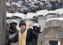 Он напомнил, что когда на улице Грушевского в Киеве начались столкновения и все попытки политиков остановить насилие окончились безрезультатно, несколько православных монахов встали между отрядами милиции и протестующими и обратились ко всем с призывом к примирению. ---------