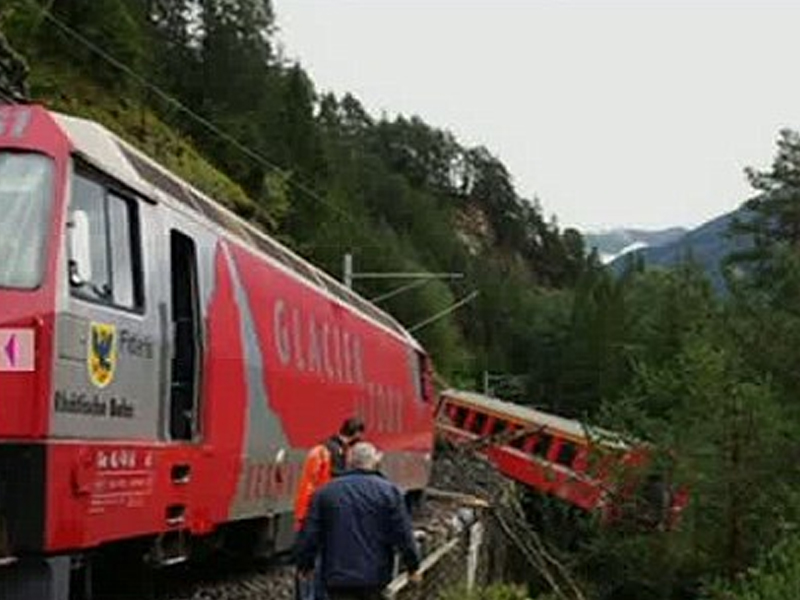 Всего в популярном среди туристов поезде под названии "Ледниковый экспресс" ехали около 140 человек. Состав, двигавшийся из Санкт-Морица в направлении города Кур, въехал в кучу земли, засыпавшую рельсы из-за оползня.