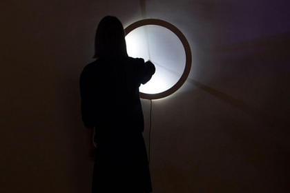 Часы представляют собой кольцо со встроенными светодиодами. Устройство подключено к платформе Arduino. Когда в центр круга помещается палец, датчики отключаются и образуются три тени, которые соответствуют стрелкам - часовой, минутной и секундной. Последняя тень - бледнее всех остальных.