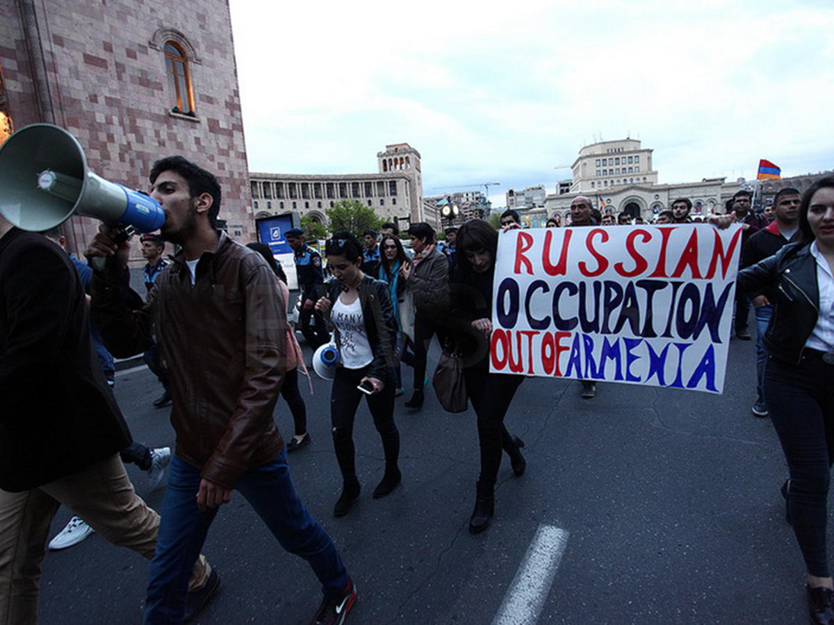 Мероприятие началось возле здания правительства Армении, здесь звучали призывы о выходе страны из состава Евразийского экономического союза. После этого активисты направились в сторону посольства России.
