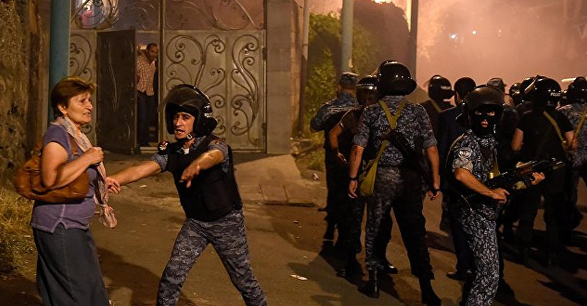 С 17 июля в Ереване проходит акция протеста, участники которой по вечерам устраивают пикет перед оцеплением полиции, чтобы помешать провести спецоперацию против вооруженной группы.
