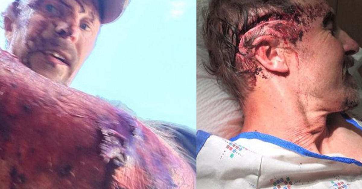 На видео Тодд Орр спокойно и с легкой улыбкой рассказывает о пережитом нападении дикого зверя. Его лицо залито кровью, на голове большая рваная рана, руки также изранены, передает Day.Az со ссылкой на tvzvezda.ru.