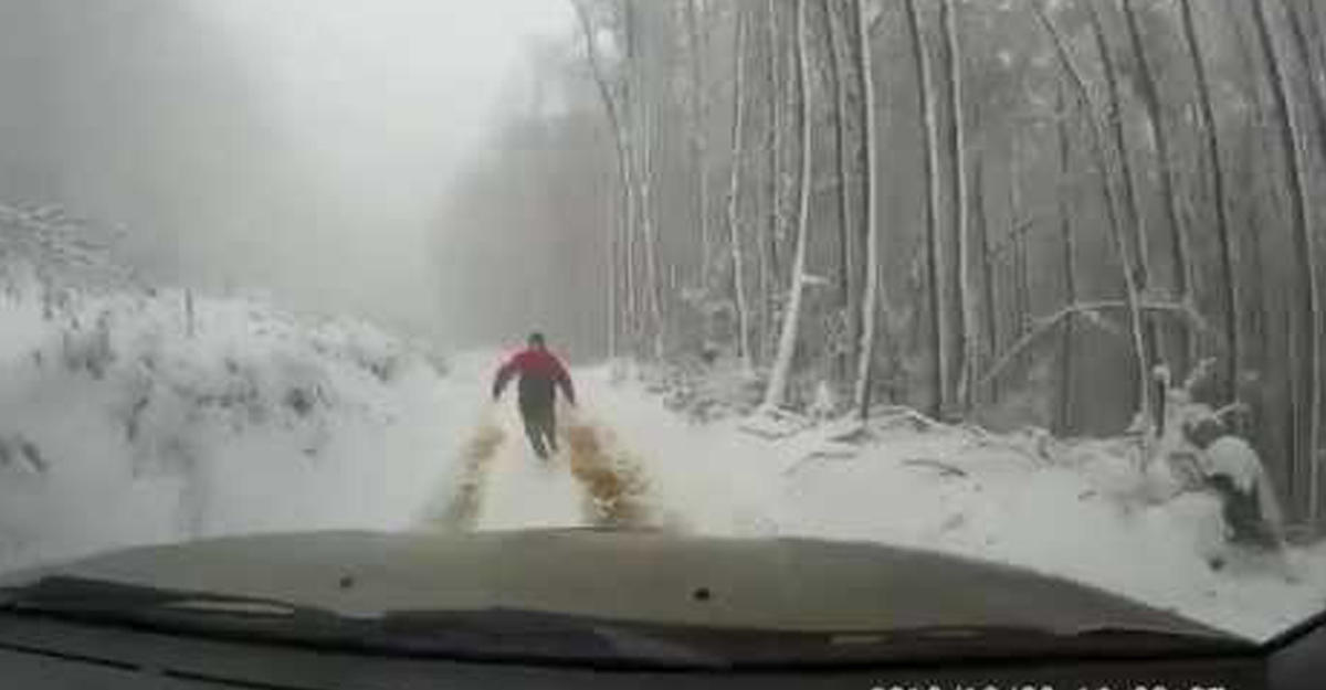 Видео снято на видерегистратор автомобиля, хозяин которого вышел по своим делам, забыв поставить на ручник, передает Day.Az со ссылкой на dezinfo.net.