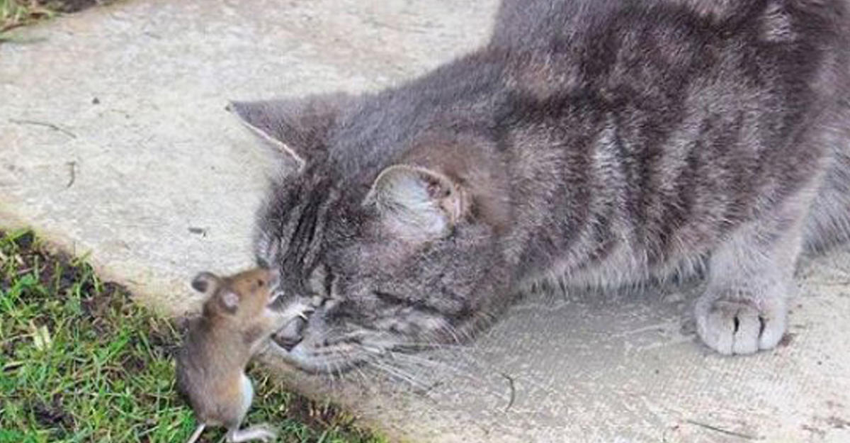 Кот слишком долго играл с мышкой и лишился обеда - ВИДЕО