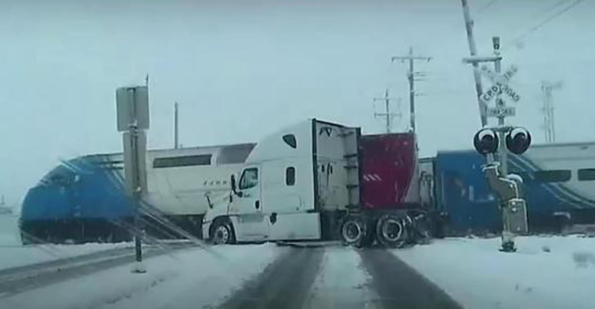 В США пассажирский поезд разорвал фуру пополам - ВИДЕО