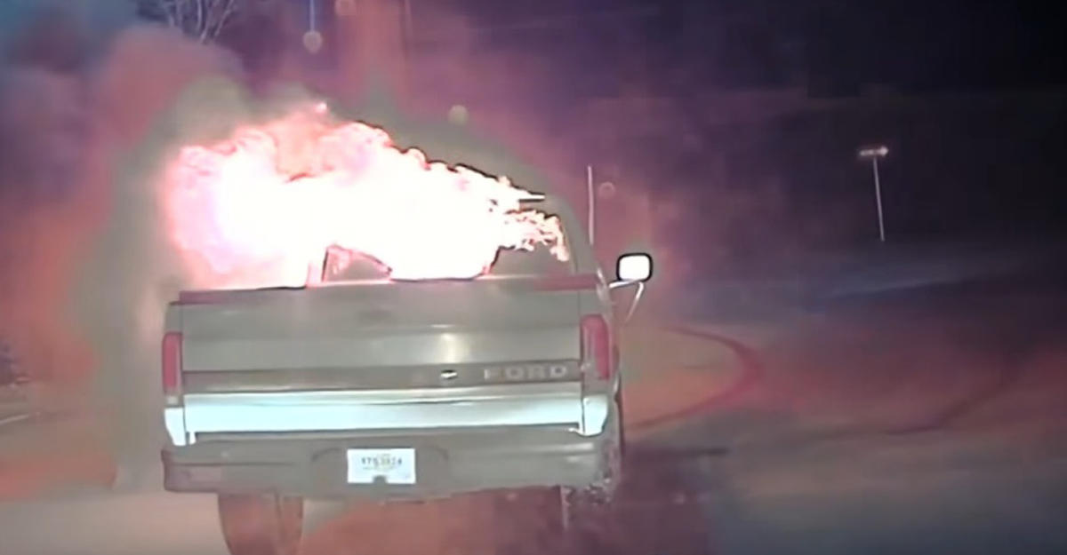 Сотрудник полиции техасского города Гленн Хайтс спас ресторан от горящего пикапа.