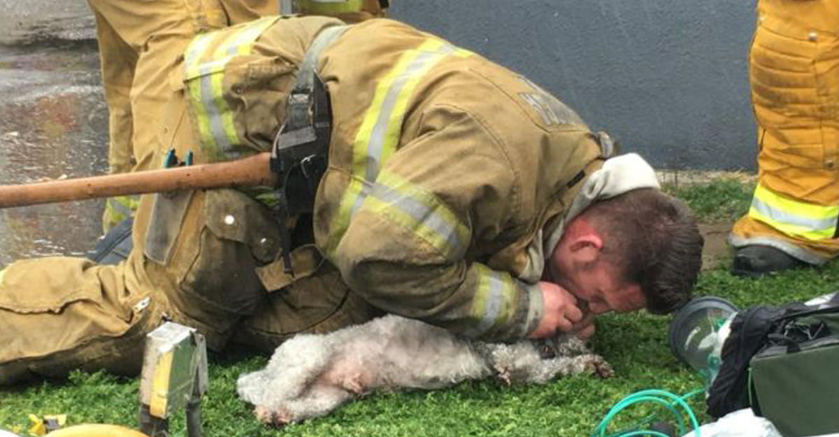 Пожарный из США спас собаку искусственным дыханием - ВИДЕО